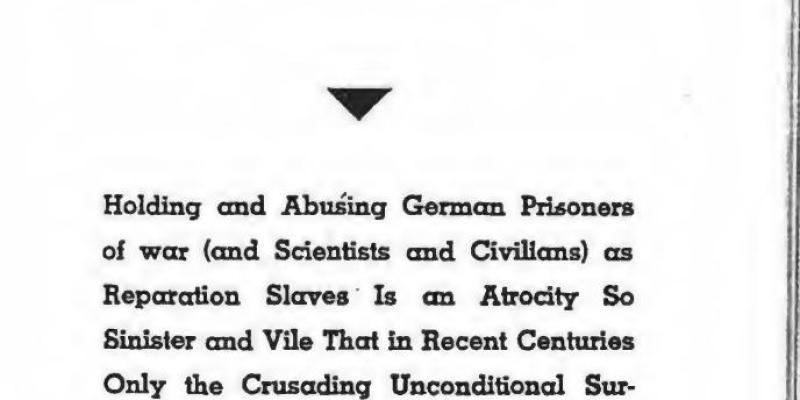 Slave-Laboring German Prisoners of WarHolding and Abusing German Prisoners of war (and Scientists and Civilians) as Reparation Slaves Is an Atrocity So Sinister and Vile That in Recent Centuries Only the Crusading Unconditional Surrenderists Have Been Degenerate Enough to Try It.
