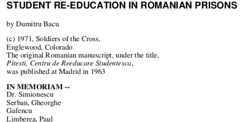 The author of this book, a Romanian born in Greek territory, went to Romania for his university education and there became a member of the anti-Communist organization that flourished in that nation before and during the tragic and fratricida...